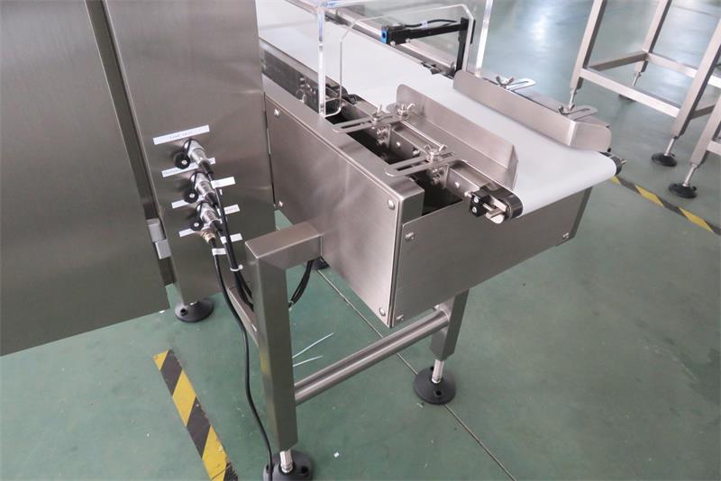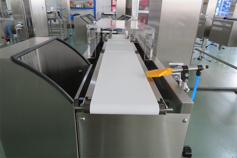 這款配了輸送帶的檢重秤,該廠家要求的是需要推板式來檢測重量不合格的產(chǎn)品自動進行剔除,他這個是一個橢圓形輸送帶,其中搭配兩個檢重秤。速度可達一分鐘60個(支持非標(biāo)),范圍是5-3000g,精度在±0.5g。他的產(chǎn)品重量基本都在60-80g。我司工廠技術(shù)師傅用了大概8天時間調(diào)試好、裝配好后,在今天完工發(fā)貨。